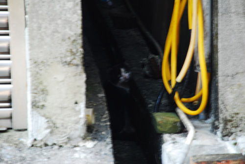 本來她是在我腳邊啦,大概是被我嚇到所以溜進暗巷不肯出來