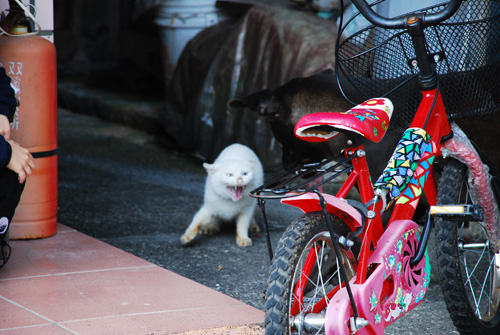 (很明顯看出來小皮沒有想攻擊貓)