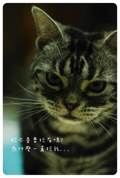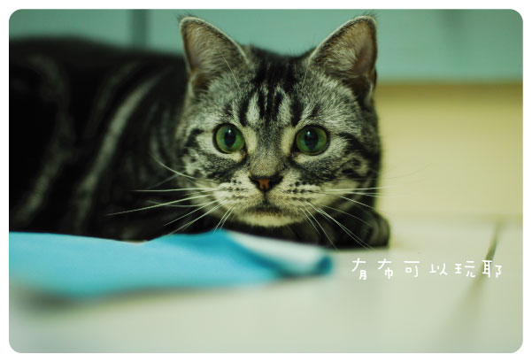 娘:因為妳比布好玩阿~ 她不會握手,她只聽的懂"坐下"而且只在放飯時願意理妳.......= = 前幾天把鋪在她睡窩地上的防水布洗乾淨風乾後拿下來折,她就一直爆衝以前娘做東西在布上畫線都要把馬可關在門外面不然線都不用畫,等她玩的高興時布都皺了~噗