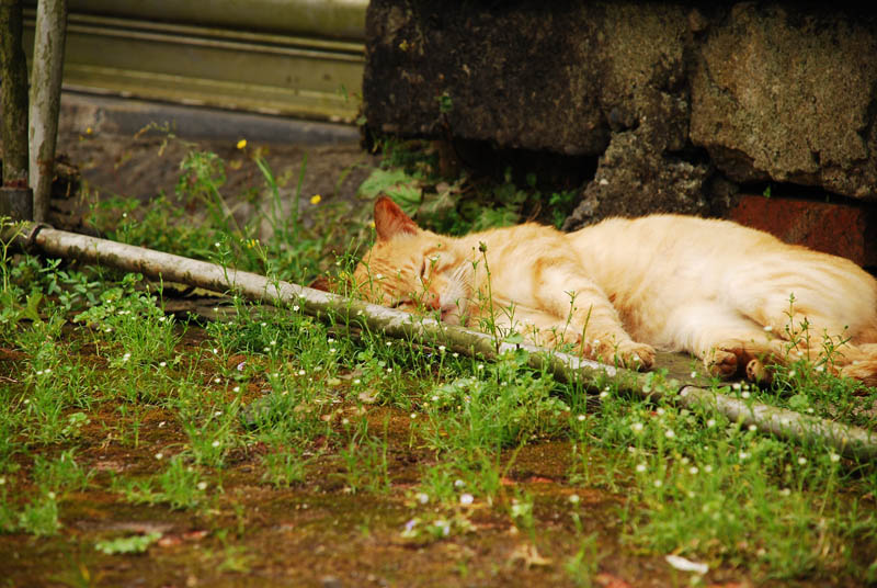 小村莊的貓咪不是曬太陽就是優閒漫步,這也是鄉下貓的另一種幸福吧!