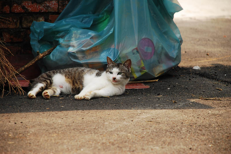 繞了整個右半邊社區,不曉得是不是貓都在睡就只遇到上面的害羞小貓,我們只好轉戰老地方