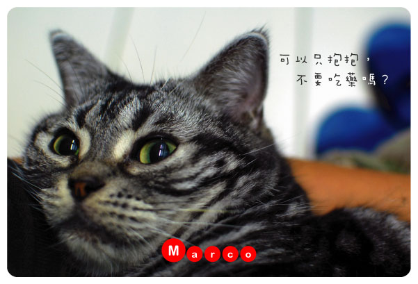 經歷過心情跌到谷底後,終究要打起精神面對一切非常謝謝幫助我&關心Marco的各位好友真的,謝謝你們:) 這種戲碼每天都要上演一次..... 還好這孩子沒有因為我餵藥&拿針筒餵她喝水就不爽不理我她還是很愛黏著我