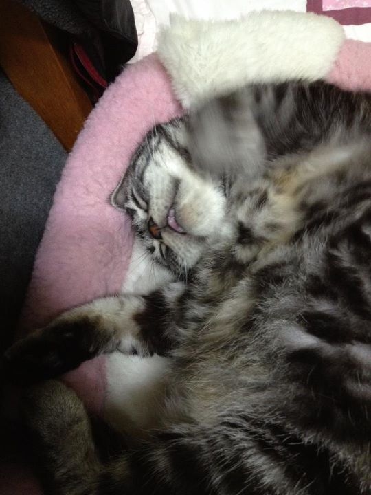 房間有開暖氣,溫暖的她常常呈現放鬆狀