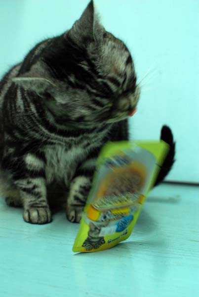 過年嘛!當然要加菜啦! 蛋白5.5%非常低 這小子知道有好料 聞個不停 馬可:拆啊妳! 臉越來越臭 這樣一包65元老母我對她夠好吧!!!馬可跟馬可娘在這邊還是跟大家拜個晚年祝大家新年快樂!^___^