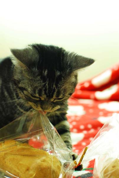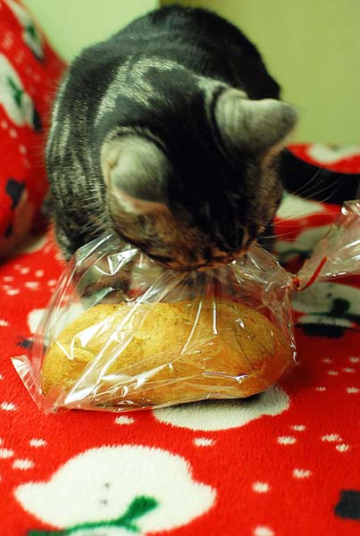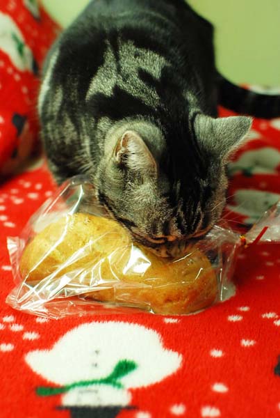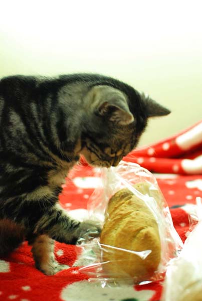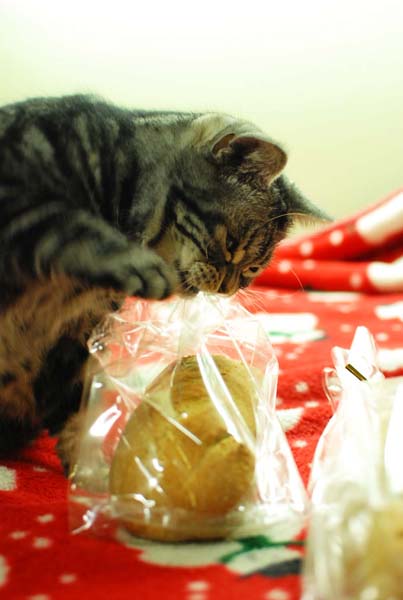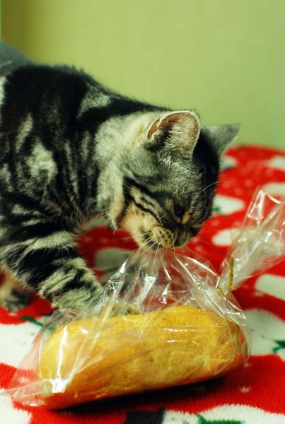 國王餅都還沒擺下去,這傢伙直接朝葡萄.麵包的"鄉村乳酪"飛撲 咬 拉 扯 動作一氣呵成 馬可可:扯不開!我整包帶走! 馬可可:我好想吃啊!!!!! 再試一次 我是壞馬麻XDDDDDDDDDDDD